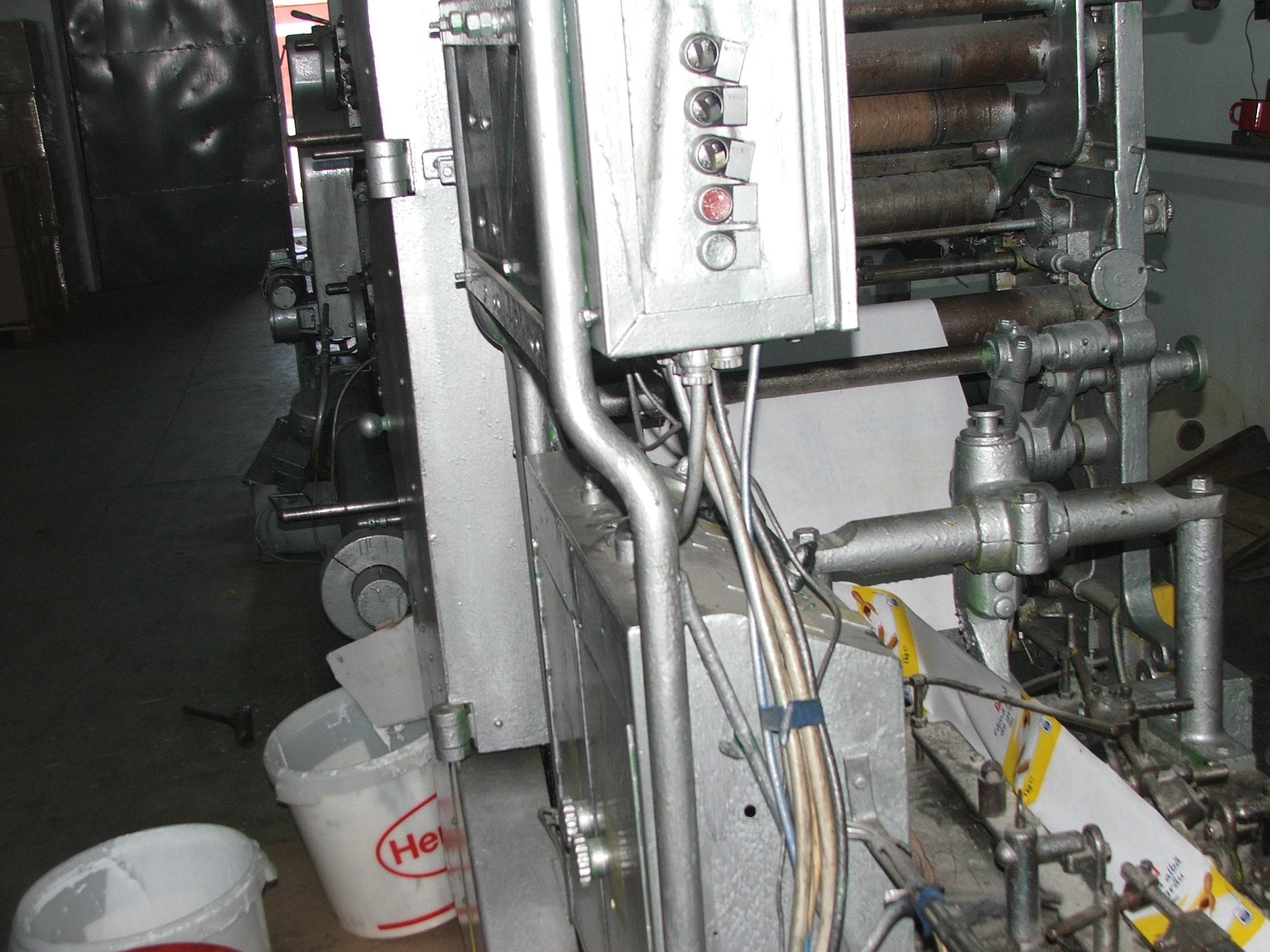 W&H Triumph I-S 1271 del año 1962 es una máquina de hacer bolsas SOS equipada con impresora en línea de 4 colores QMS 992. La máquina tiene fotocélula.
