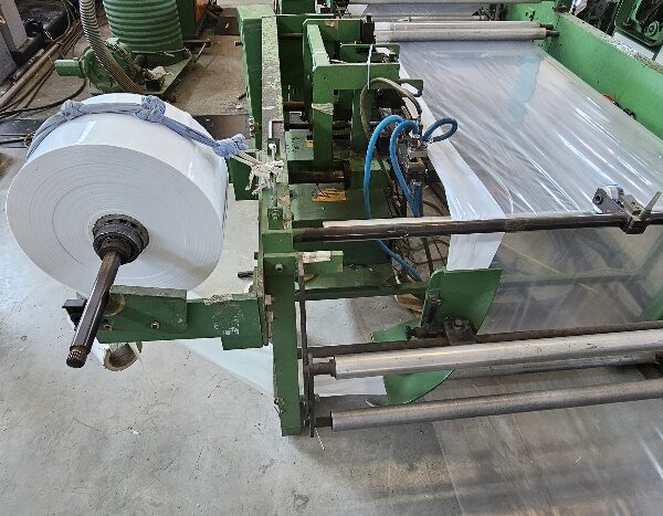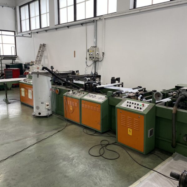 Lemo welding machine Intermat 850 year 1979 produces bags with reinforcement (DKT), side or double weld, with or without reinforcement. It has the ability to make a lower seam.