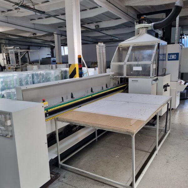 Lemo welding machine model INTERmat S 850 DKT/CT year 2008 is for production of bags with/without reinforcement, with/without bottom fold. Capacity: 16200 pcs/h, 270 t/h. There is technical documentation.