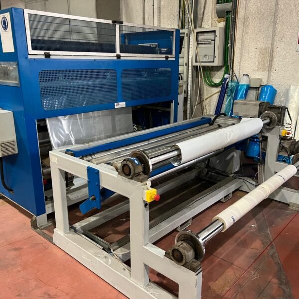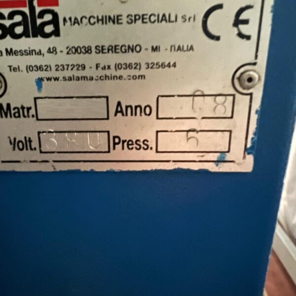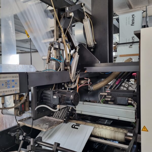 Sala Macchine Speciali Autosac 180K year 2008 is machine designed for converting tubular rolls of high-density HD and low-density LD polyethylene (PE) into bags and caps for pallets. Max mechanical speed is 20 meters per minute.