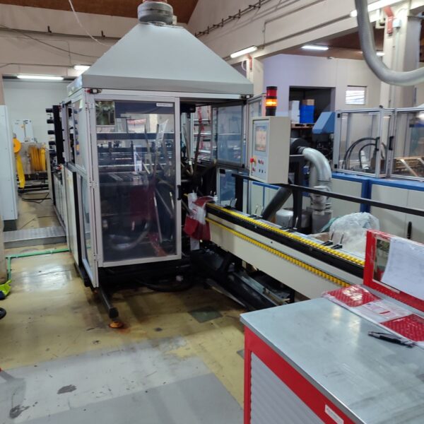 Scae Dimatic ETH 471 HG/110 year 2019 is plastic welding machine designed for the production of wicket bags with die-cut handle positioned on the top or on the side of the bag, with easy opening ripper. Immediately available