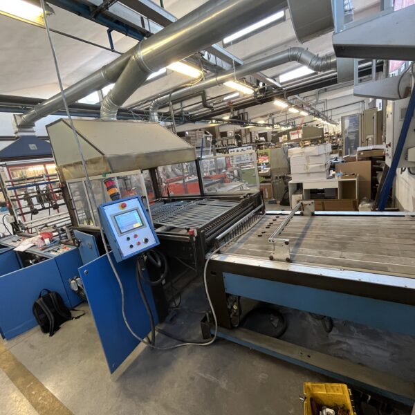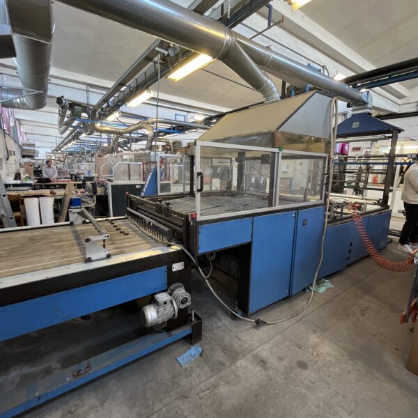 Saldoflex MODULA 2013/S NON STOP welding machine is designed for the production of bottom-sealed bags and T-shirt bags up to four lines. Equipped with new servo driven electronic, in line printer stack type Filippini&Paganini 8 colors. The machine in perfect condition, regularly serviced