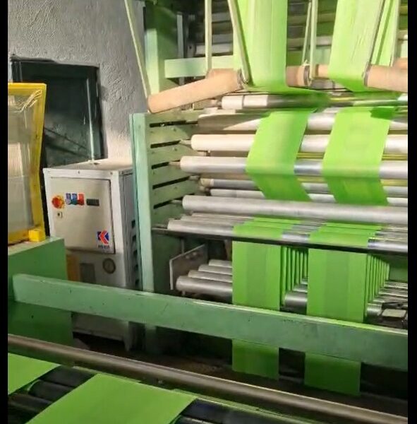 Scae Dimatic ETH 471/110 year 2012 is plastic welding machine designed for the production of wicket bags with die-cut handle from PP and CPP materials. Immediately available