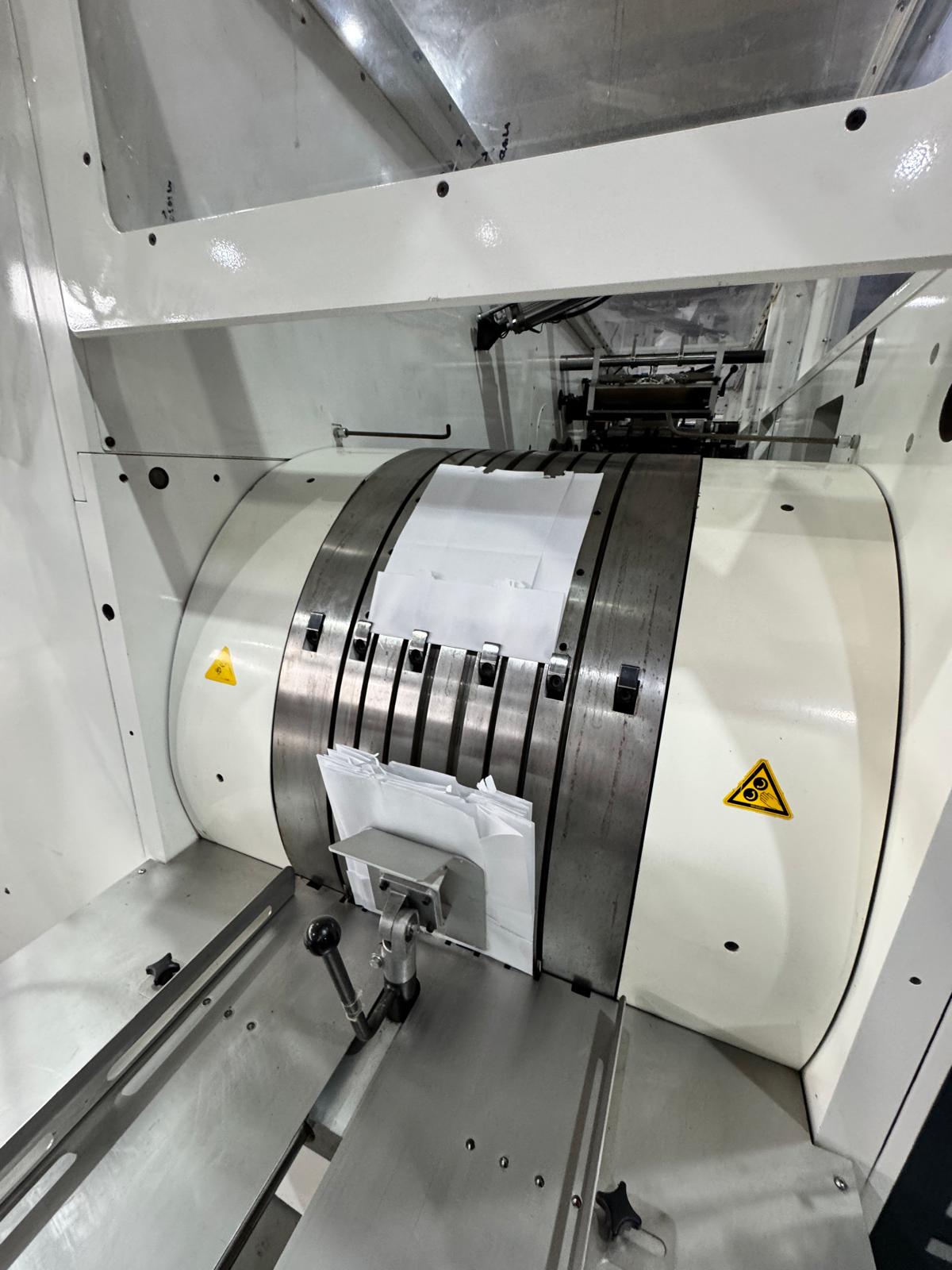 - La macchina è un’avanzata macchina per sacchetti con fondo a blocchi, progettata per la produzione di sacchetti di carta di medie e grandi dimensioni.