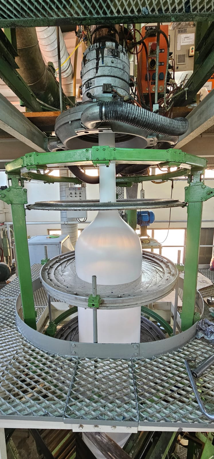 Hosokawa Alpine is an extruder made in Germany for the production of tubular and flat film. The machine is designed to work with HDPE film.