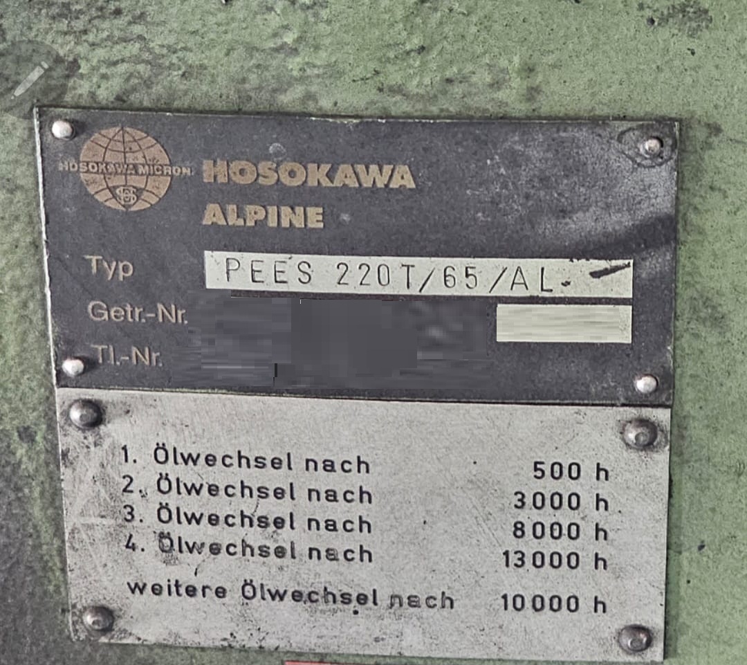 - Screw diameter: 65 mm (HOSOKAWA ALPINE HS65-18D)