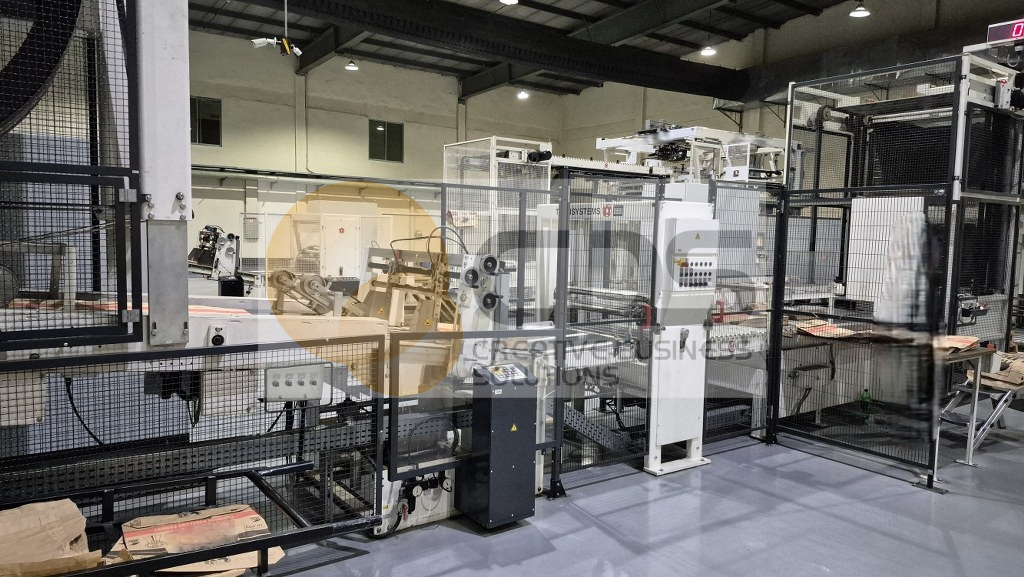 W&H paper sack line: W&H Tail-End Printer FLEXA 820, W&H Tuber AM 8115 CL, TRANSYSTEM 1, W&H Bottomer AD 8320 CL, TRANSYSTEM 2 and PALLETIZER Arcomat 3 year 2018